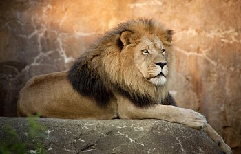a large animal from Africa or Asia, it looks like a big cat and eats other animals, people say it is the King of animals