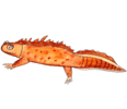 an animal with a long thin body a tail and short legs, it lives both in water and on land