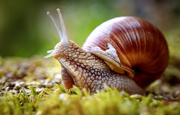 A small animal with no legs. It moves very slowly and has a shell on its back, like a small house