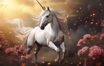 an animal from fables and legends that looks like a horse and has a horn on his nose