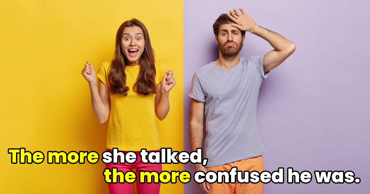 Tato věta říká “čím více mluvila, tím více jsem byl zmaten”. Slovo “zmaten” je v češtině až na konci, ale v angličtině patří ke slovíčku more. Ukažme si další příklady: