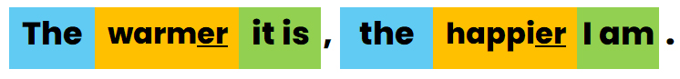 Pozor! Zde nelze použít zkrácené tvary: The warmer it's, the happier I'm.