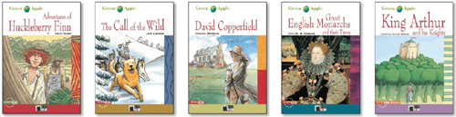 Edice GREEN APPLE je určena spíše mladším žákům a studentům. Nabízí jim pestřejší a bohatě ilustrovaný design a příběhy vybrané tak, aby byly pro žáky motivující - jak vidíte, je zde např. Huckleberry Finn, Volání divočiny Jacka Londona, Dickensův David Copperfield či legenda o Králi Artušovi. Vybírat můžeme asi z 50 titulů ve třech úrovních pokročilosti (A1, A2 a B1).