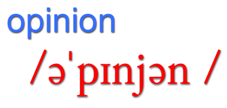 Podstatné jméno OPINION mají lidé tendenci vyslovovat "počesku" s dlouhým i a se samohláskou o na začátku (opínijon). Pozor ale, slovo začíná na schwa / ə / a i je zde krátké. Pozor i na přízvuk, který je na druhé slabice. Zkuste přečíst tyto věty: