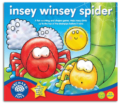 Hra má název INSEY WINSEY SPIDER. Možná také někdo znáte stejnojmenou anglickou písničku pro děti. V písničce se zpívá o pavoučkovi, který leze okapem, najednou zaprší a déšť pavoučka spláchne dolů. Naštěstí přijde sluníčko, které vodu odpaří a pavouček zase může lézt nahoru.