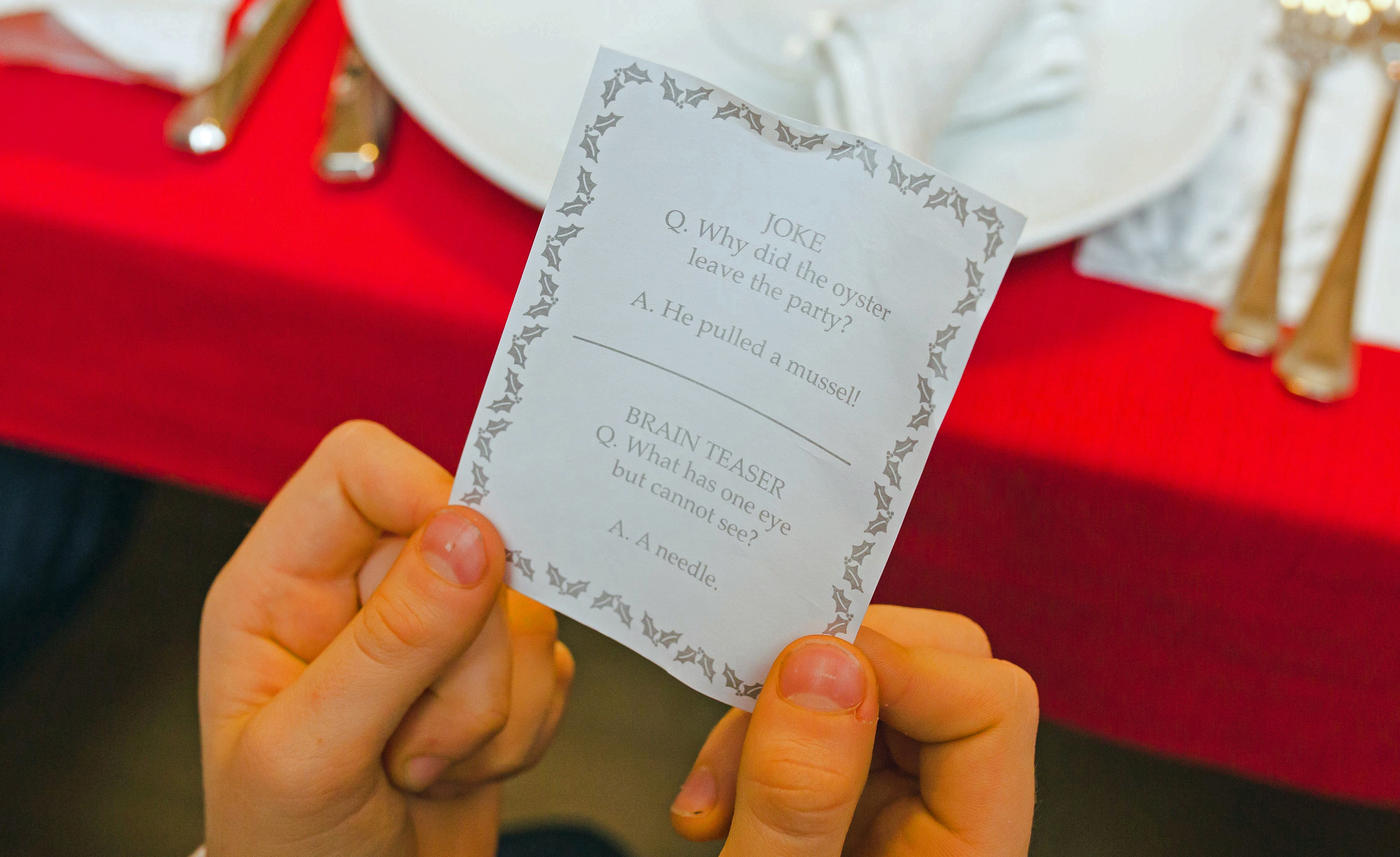U vánočního oběda najdete svůj cracker na slavnostně prostřené tabuli na talíři nebo vedle něj. Většinou se otvírají ještě před jídlem a korunka, která je obsažena uvnitř, se nasadí na hlavu.