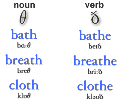 Zaměřili jsme se jen na zvláštnost změny neznělé hlásky /θ/ v podstatných jménech breath, bath a cloth na znělou hlásku /ð/ ve slovesech breathe, bathe a clothe.
