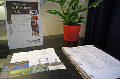 Sítě Radisson také nabízí tzv. One Touch Service, což je vlastně nejužitečnější tlačítko. Při jeho volbě můžete získat informace od concierge, můžete si objednat jídlo na pokoj, buzení po telefonu, prádelnu či úklid pokoje (více zde).