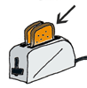 Pokud si chcete vyrobit opečený chléb, použijete topinkovač, v angličtině toaster/'təʊstə/. Vložíte do něj bread a vyskočí vám toast. Slyšet můžete také pop-up toaster (od slovesa pop – vyskočit).