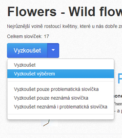 Vyberete si okruh slovní zásoby, který má dostatečné množství obrázků (nyní je limit 16), otevřete si jeho detail (ikonka lupy ve výpisu dostupných okruhů) a zvolíte ‘Spustit výběrem’.