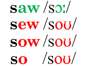| saw/'sɔ:/ | /sɔ:/ | /sɔ:/ |