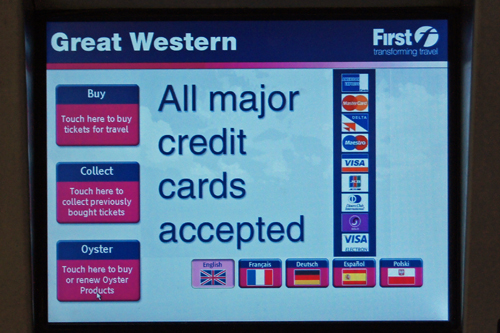 This is a ticket machine at the Paddington train station in London.