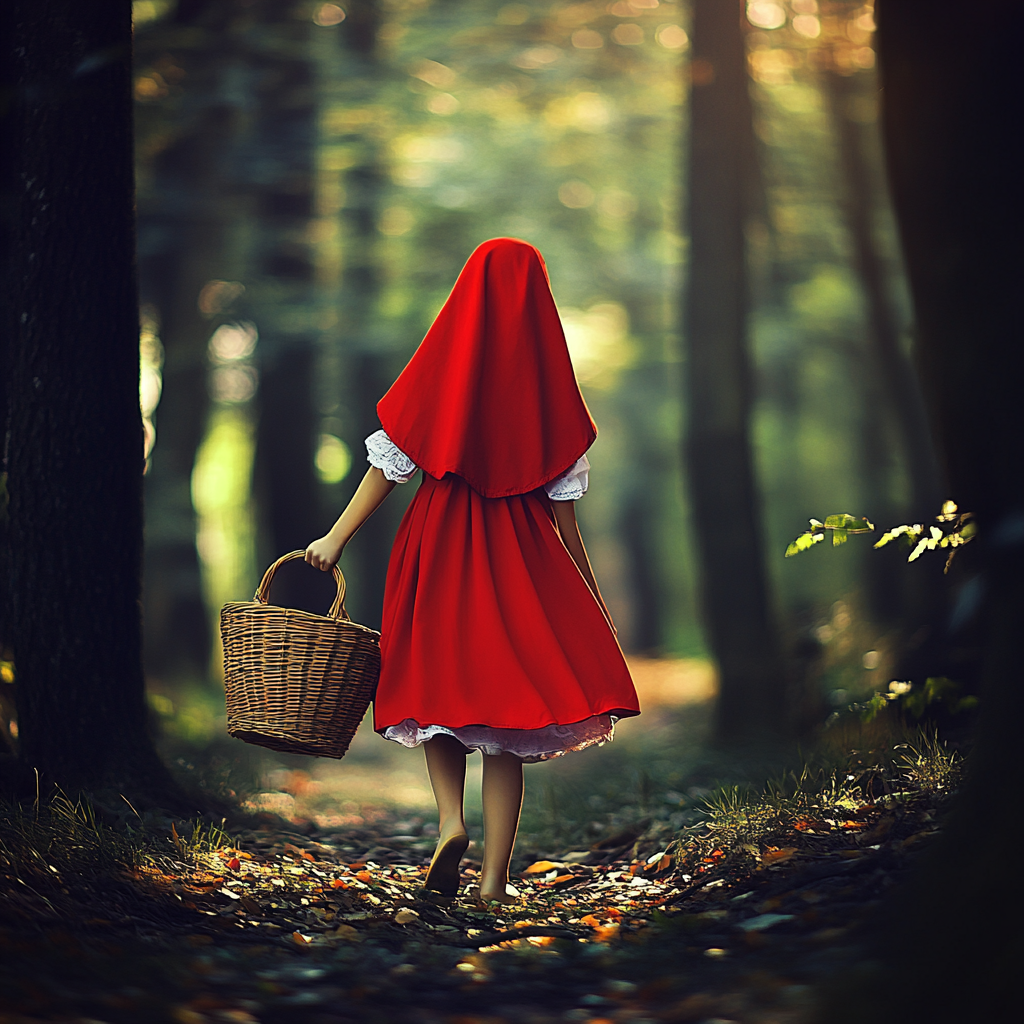 Little Red Riding Hood set off through the forest, carrying a basket for her grandmother. *30