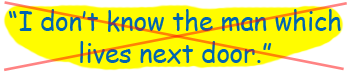 I don't like the man who lives next door. *7 (nebo that, nikoliv však which)