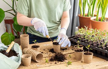 to put a young plant in soil after you have grown it from seed