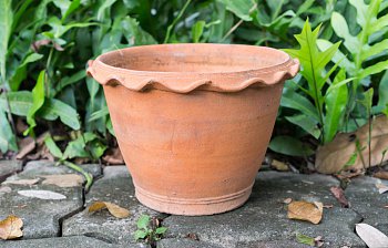 a round clay, metal or plastic container in which you can grow plants