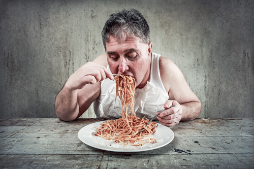 He thinks he's a gourmand, but in fact he is a compulsive eater. *8