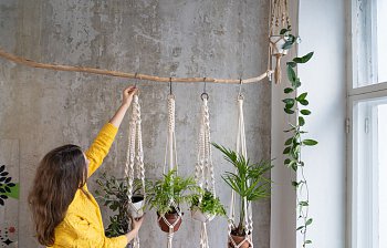 to hang something on strings, ropes, cables etc., especially between two things or in a line (such as decorations etc.)