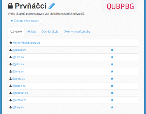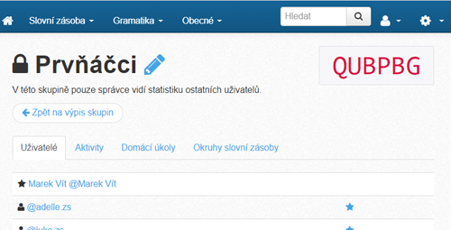 Nejdůležitější funkcí pro učitele je možnost vytváření a spravování skupin uživatelů. Zde si můžete vytvořit skupinu pro každou vaši třídu či v případě dělených tříd třeba i pro každou skupinu zvlášť. Těmto skupinám potom můžete zadávat úkoly a sledovat, kdo a s jakým výsledkem je plní.