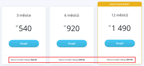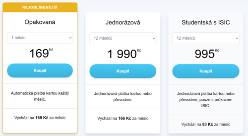 Jako poslední je tu jednorázové roční předplatné za 2290 Kč pro ty, kteří nemají rádi opakované platby kartou nebo chtějí platit převodem.