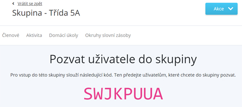 Po kliknutí zde najdete heslo – to předáte studentům, které chcete přihlásit do dané skupiny – ti ho vloží do příslušeného políčka.