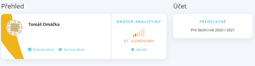 Po uhrazení se vám v přehledu aplikace změní informace o předplatném. Běžně se v tomto okénku ukazuje, do kdy platí vaše předplatné. V případě školního předplatného zde vidíte “pro školní rok 2020/2021”. Stejné podrobnosti pak na tomto místě naleznou všichni vámi přidaní učitelé a pak také jednotliví studenti.