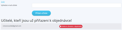 Zde byste měli vidět svůj email, protože jste skupinu založili a jste tedy jediný učitel (administrátor). Vložením emailů dalších učitelů je přiřadíte do vaší školní skupiny. V ten moment se jejich předplatné aktivuje na celý školní rok 2020/2021.