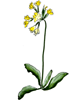 a small plant with clusters of yellow flowers on a stem which appear in early spring