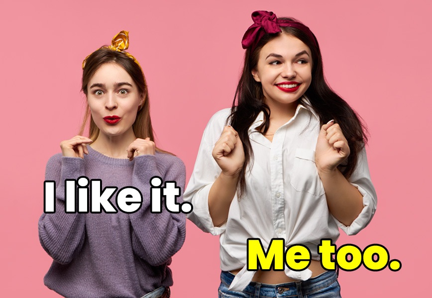Krátké přitakání já také vyjádříme jednoduše neformální frází: Me too.