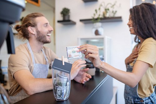 A jak je to třeba v kavárnách, kde si objednáváte u baru? Tam najdete na pultu často tip jar /'tɪpˌdʒɑ:/, což je “sklenička na dýška”.