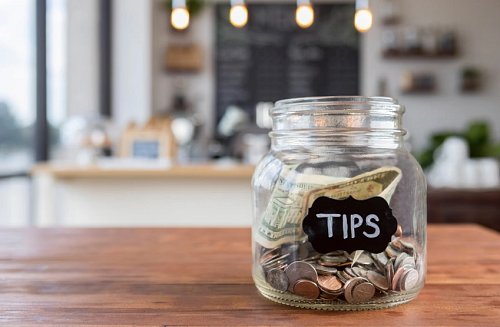 Začneme ale základním slovíčkem tip/'tɪp/, což je spropitné, nebo hovorově dýško či tuzér.