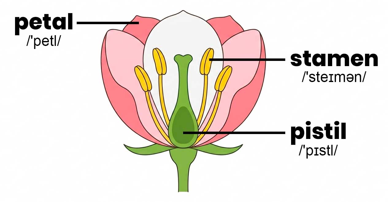 Pokud vás zajímá podrobnější rozbor květu, zde je pokročilejší slovní zásoba: