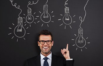 verb - to come up with something, a design, machine etc, that nobody has come up with before you