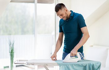verb - to make clothes smooth and flat by using a special instrument with a hot flat bottom