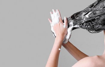verb - to make your hair clean by using shampoo etc.