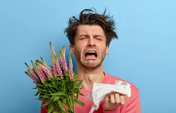 verb - to let air out of your nose suddenly and with a loud noise, often as a result of an allergy etc.