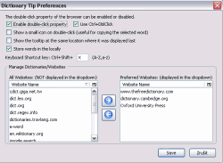 Rozšíření Dictionary Tooltip slouží k vyhledání jakéhokoliv slova na které člověk kdekoliv na stránce klikne ve výkladovém, či jiném slovníku. Skvělé na tom je, že se slovník otevře pouhým poklepáním na slovíčko (já osobně si nastavil aby se to otevíralo na CTRL + kliknutí) a otevře se jako takové vyskakovací okno.