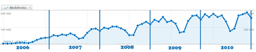 A takto se vyvíjí naše návštěvnost od samého počátku, od roku 2006:
