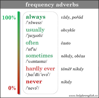 Pokud s angličtinou právě začínáte, určitě jste se již setkali se seznamem základních příslovcí, která označují frekvenci, neboli ‘jak často se něco děje’. Nejčastěji jsou spojena s přítomným časem prostým, který používáme hlavně pro opakující se děje.