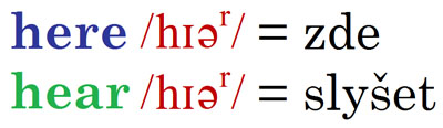 Pokud jste úplní začátečníci a výslovnost znáte, můžeme vám gratulovat. Všichni ostatní si pak zapamatují, že slovíčka here/'hɪə/ a hear/'hɪə/ se vyslovují stejně.