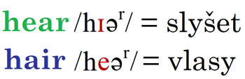 Jenže mnoho studentů vyslovuje slovo hear jako /heər/. To je ale výslovnost slovíčka ‘vlasy’: