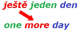 Jak vidíte na znázornění výše, pokud přeložíme české ještě anglickým more, musíme ho vsunout mezi číslo a podstatné jméno. Ještě jeden den je vlastně jeden den navíc (more).