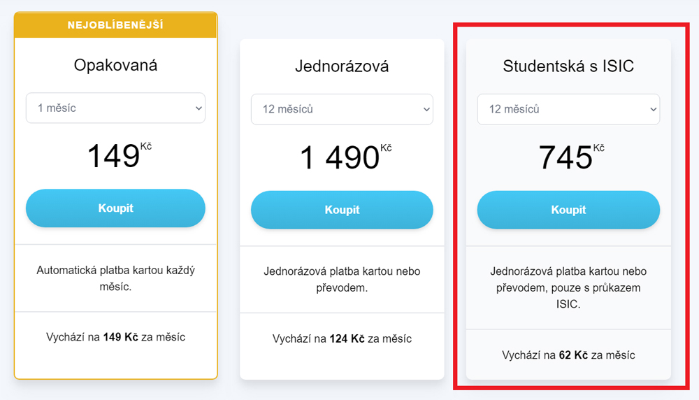 Připravili jsme možnost objednání naší aplikace English Me se slevou 50% pro studenty, kteří mají platnou kartu ISIC. Náš portál i naši aplikaci jsme vždy vyvíjeli s ohledem na studenty a jsme rádi, že jim nyní můžeme poskytovat tuto slevu, díky které pro ně bude English Me daleko dostupnější.