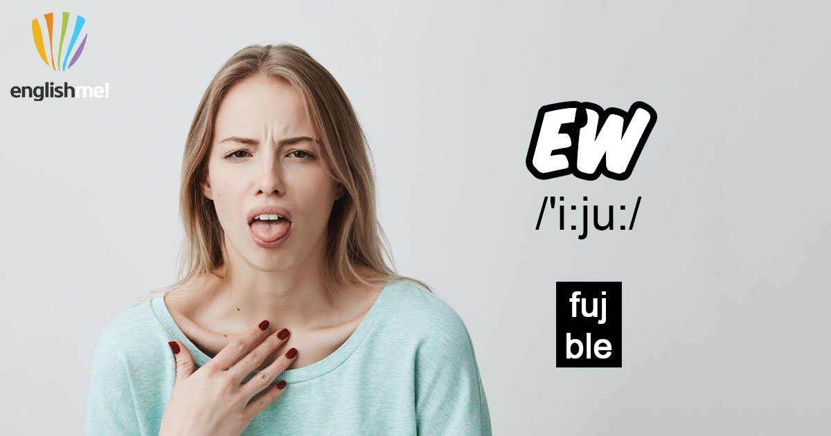 Slovíčko ew/'i:ju:/ je citoslovce vyjadřující odpor – přeložit lze tedy třeba jako fuj nebo ble. Pozor na výslovnost, čte se prostě “íjů” (někdy můžete vidět i pravopis eww nebo eew).