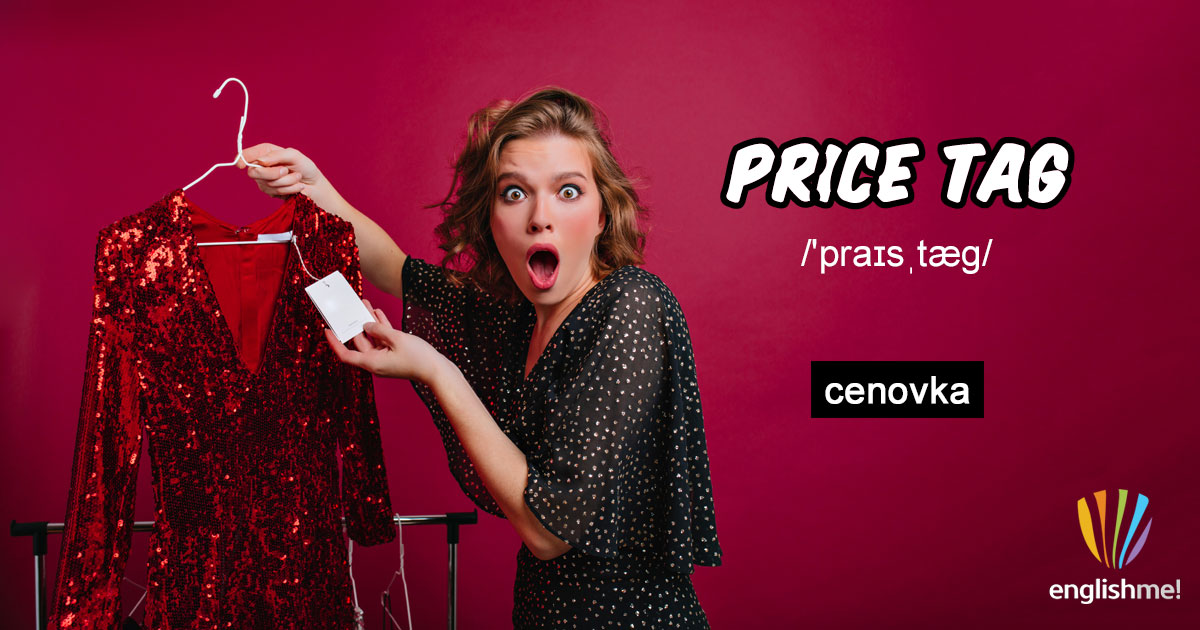 Spojení price tag/'praɪsˌtæg/ označuje cenovku, tedy např. nálepku či visačku, na které je uvedená cena zboží. Slovo price je zde samozřejmě cena a tag/'tæg/ může označovat nejrůznější nálepky, visačky, známky, štítky apod.