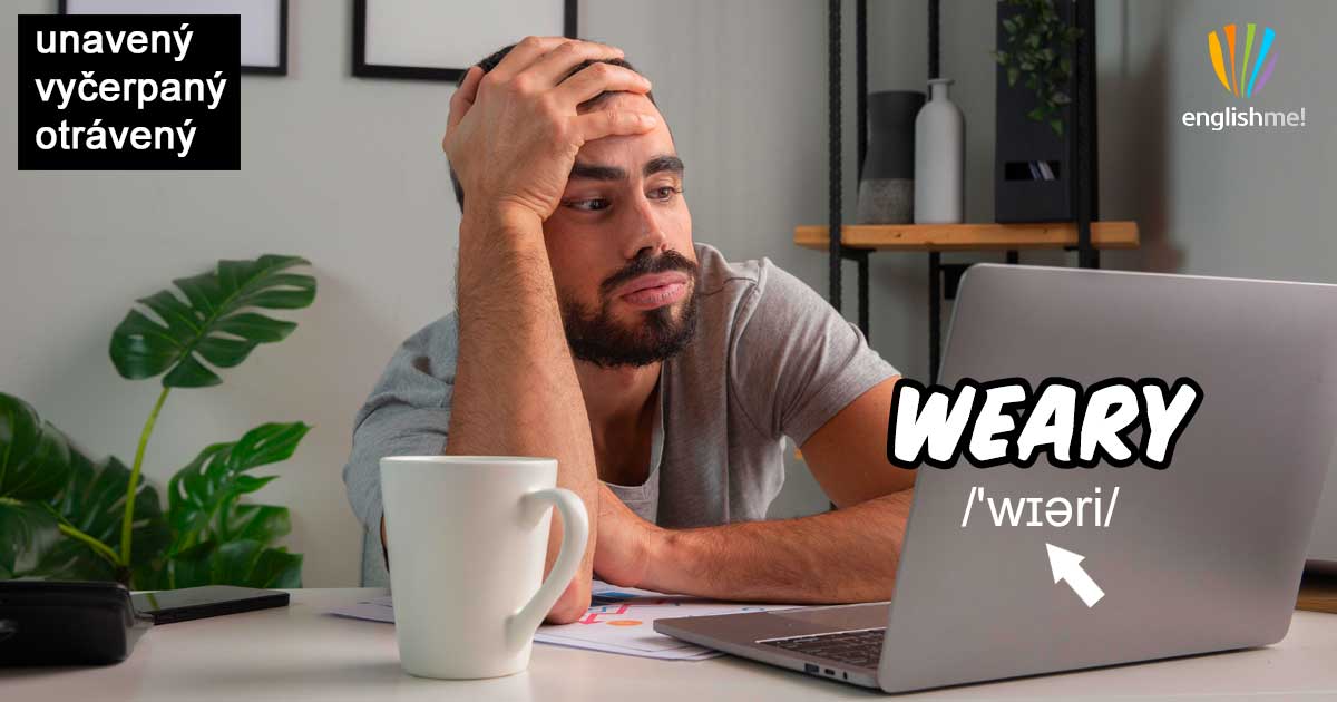 Přídavné jméno weary/'wɪəri/ znamená vyčerpaný, unavený, znavený. Často jde o vyčerpání z dlouhodobé zátěže a mnohdy popisuje také emoční vyčerpání.
