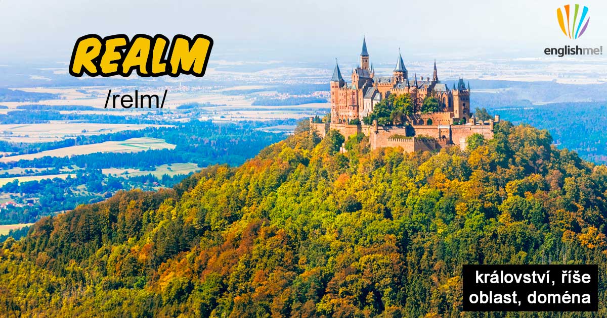 Původní význam podstatného jména realm/‘relm/ je království či říše, tedy země, kde vládně nějaký král, královna apod. Pozor, vyslovujeme s krátkým 'e’ uprostřed. Slovíčko nesouvisí s přídavným jménem real/'ri:əl/ a ani se mu ve výslovnosti nepodobá.